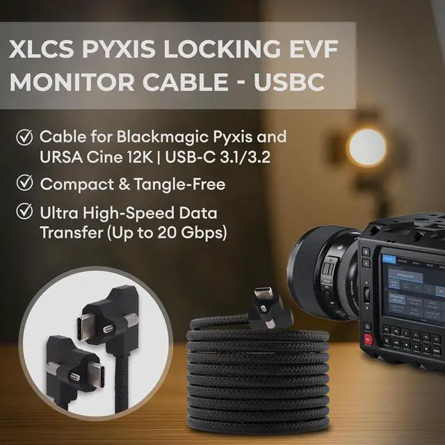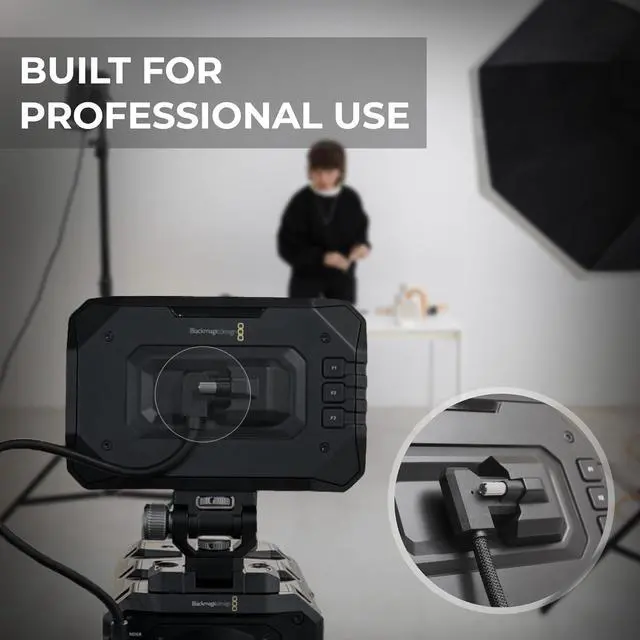 Secure Locking Design Designed for Blackmagic Pyxis & URSA Cine 12K, the cable is locked to the camera body to avoid accidental disconnection and to shield ports from damage while shooting