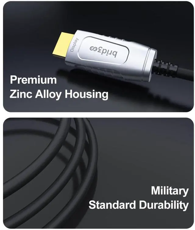 1 Ultra-Durable & Flexible Design This fiber optic HDMI 2.1 cable is built to last, featuring a 0.18-inch (4.5mm) ultra-slim yet robust design that withstands 20,000+ bends without damage. The premium zinc alloy connectors ensure superior durability, corrosion resistance, and a sleek modern finish, making it perfect for any setup.