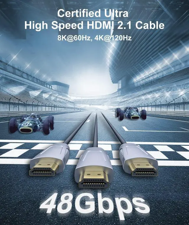 2 8K UHD & High-Speed Performance Experience stunning 8K@60Hz and 4K@120Hz visuals with ultra-smooth motion. With 48Gbps bandwidth, this long HDMI 2.1 cable fully supports HDR10+, Dolby Vision, eARC, VRR, ALLM, QFT, QMS, 3D, and more, delivering next-level clarity for gaming, streaming, and home theaters.