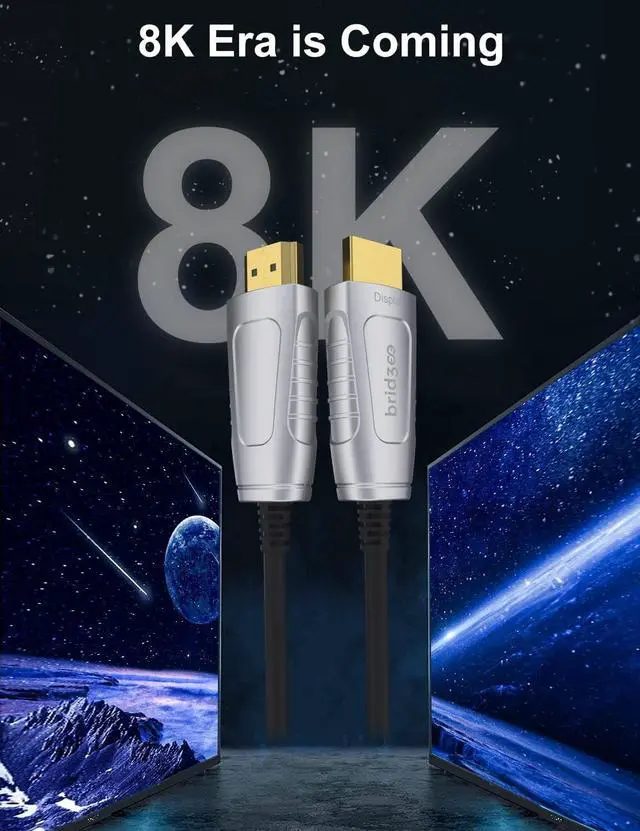 4 Stable, Lossless & Interference-Free Unlike traditional copper cables, this fiber optic HDMI 2.1 cable eliminates electromagnetic interference (EMI) for zero signal loss, maintaining crystal-clear picture quality and ultra-low latency even over long distances. Perfect for home theaters, gaming, and professional setups.