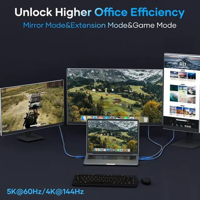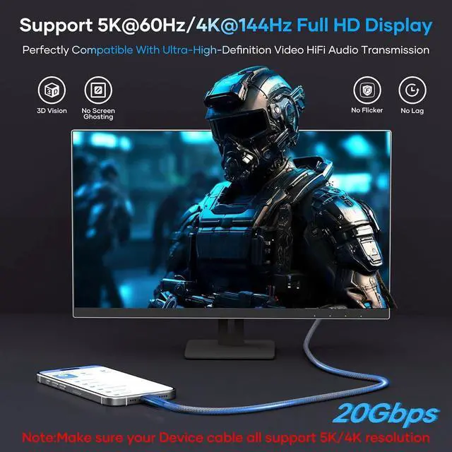 4K HD Video Display:This USB C monitor cable supports up to single monitor 4K@144Hz/120Hz/60Hz,2K@240Hz/165Hz/144Hz/120Hz and dual monitor 2K@60Hz high-definition video,compatible with all screens or monitors with USB C video ports. Whether you are watching home movies or playing games,it can bring you a great experience,Note: Video Functionality is Only Available On Devices With USB-C Ports That Support DP Alt Mode.
