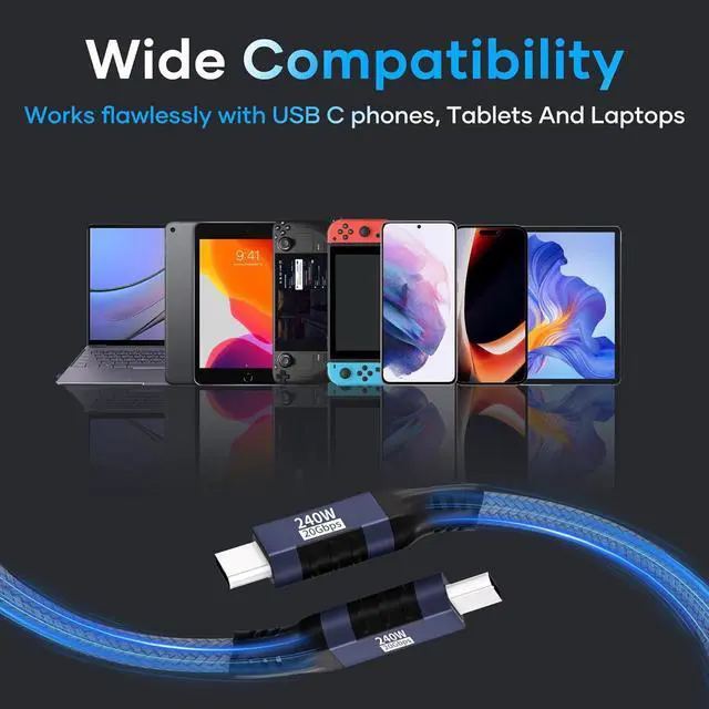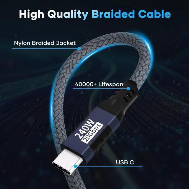 240W Super Fast Charging:USB C to USB C cable fast charging supports PD 3.1 up to 240W (48V 5A) fast charging,and backward compatible with PD 3.0/QC 5.0 QC 4.0 QC 3.0 (100W/65W/45W),one USB Type-C cable can quickly charge almost all USB-C devices,and is compatible with Thunderbolt 3/4 devices