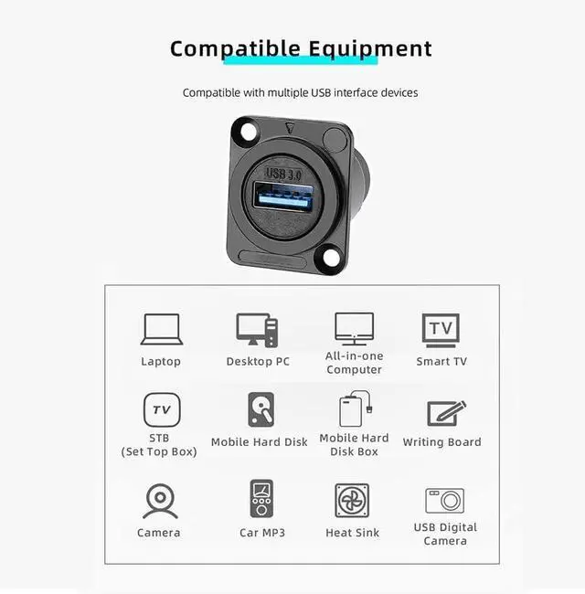 High speedTransmission speed is up to 5.0Gbps,Plug and play and enjoy high-speed data transmission with this USB panel mount connector.
