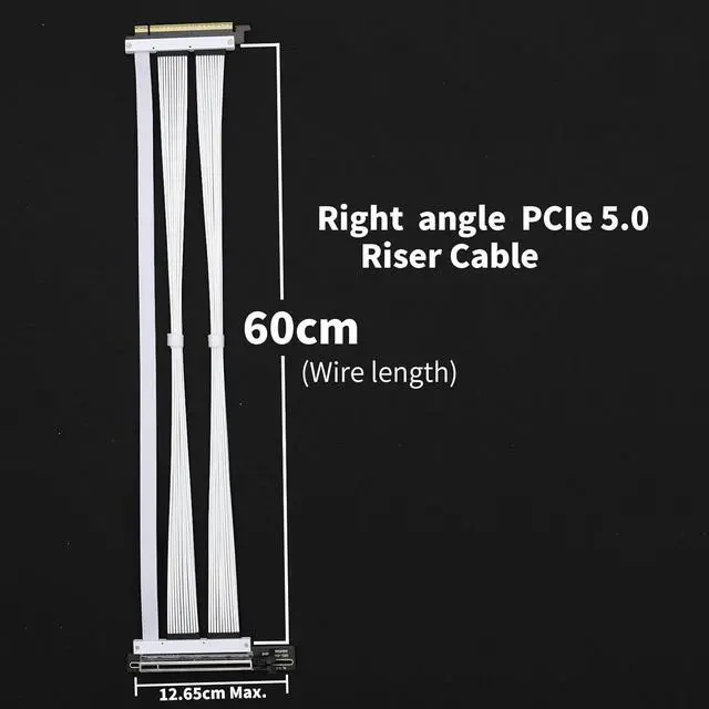 1) This PCIE GEN5 riser cable solution was originally developed to verify the GEN5 GPU, FPGA, acceleration card and RAID card development; on some specific system, this riser cable can support GEN5 data transmission with 1.0 meter length.