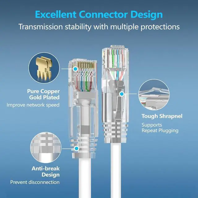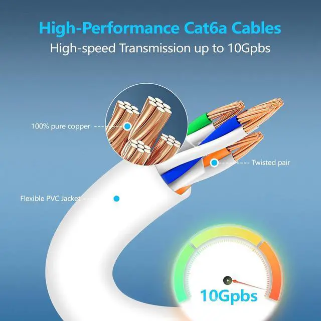 • Enhanced Performance with Pure Copper Cores: CableGeeker's CAT6A patch cables feature gold-plated 8P8C connectors for optimal network connections. With pure copper wire cores, they support speeds up to 10G and bandwidth of 550MHz for reliable, high-speed data transmission