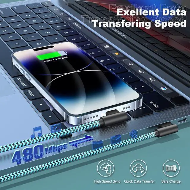 Well-made Lighting Cable: This iPhone fast charging cord is built-in four-core copper wire to provide a excellent charging efficiency. It supports up to 2.4A charge and 480Mbps transmission with safe and stable current