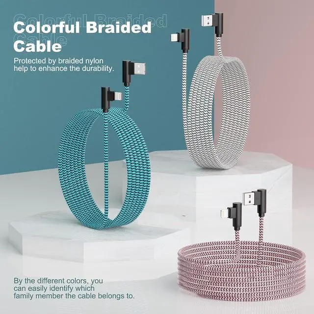 Colorful Braided Charging Cable: This 10-foot iPhone charger features a 90-degree elbow design and nylon fabric wrapping, which allows you to hold your phone effortlessly and comfortably for extended periods of time. It's easy to insert and remove, and provides extra sturdy protection for the cable, making it ideal for long-term use. No overheating or overcharging issues, effectively preventing device battery damage.