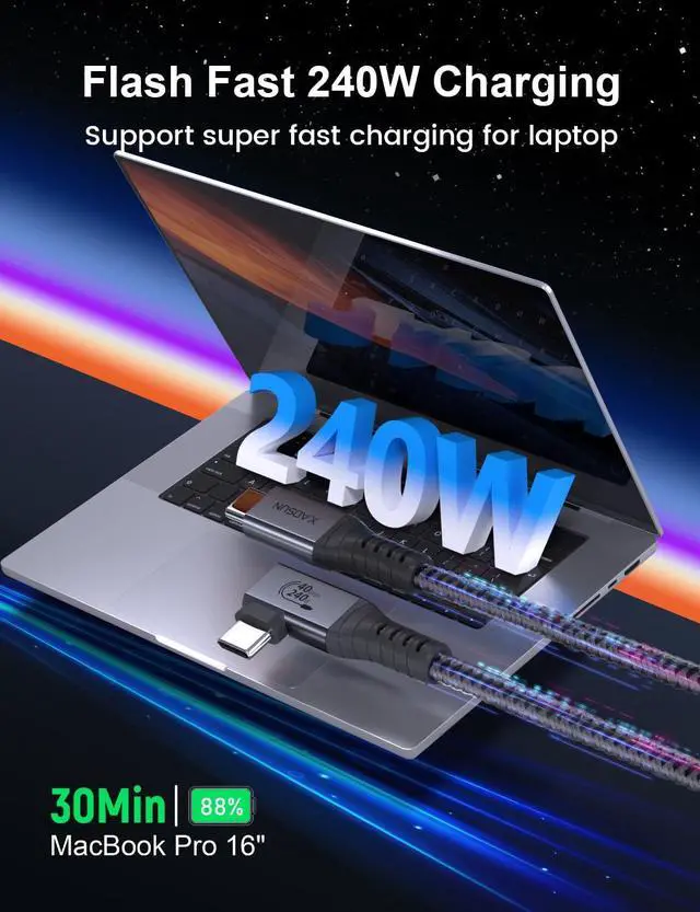Wide compatibility - 100% USB-C Compatible USB-C thunderbolt video cable has wide compatibility, support thundedrbolt 4/3 devices and all usb c devices. Backward compatible with USB-C 3.2, 3.1, and 2.0 speeds and devices. In the next 5 years, this 240w usb-c cable can meet most of your office, gaming and daily requirements.