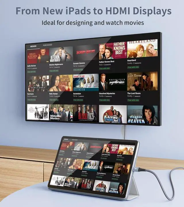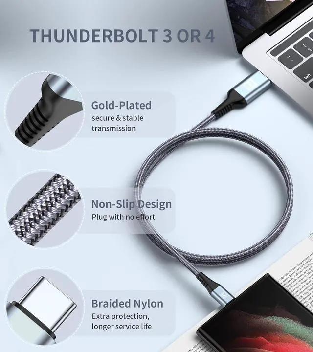 [USB C HDMI Cable]: This Thunderbolt 5/4/3 to HDMI cable can easily connect your laptop to a projector for work, or connect your iPad or phone to your TV to enjoy live events or favorites on a bigger screen's program. NOTE: It is a USB C cable, not a micro USB cable or lightning cable and does not support S7 S6 and other iPhones.