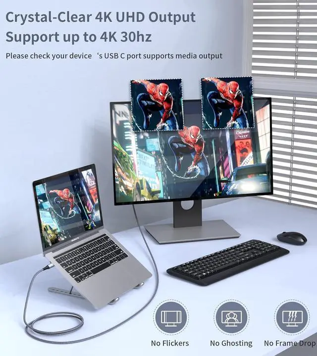 [Improve Work Efficiency]: Mirror or Extend your desktop to boost productivity. Connect to a 4K LED monitor or UHD TV. Meet all the needs from daily office use to professional video & photo editing. *Note: The transmission is Uni-directional, only from the USB-C host device to HDMI displays.
