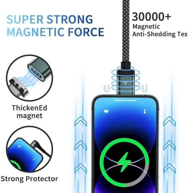 Max 100W PD Fast Charge] This USB C magnetic cable use USB PDUSB-Power Delivery fast charging technologywhich supports device power delivery from 5V/4.5A to 20V/5A (up to 100W). All USB C devices can be safely charged at the maximum rate without short circuit and over current charging. Note: Your phone and charger must support fast charge.