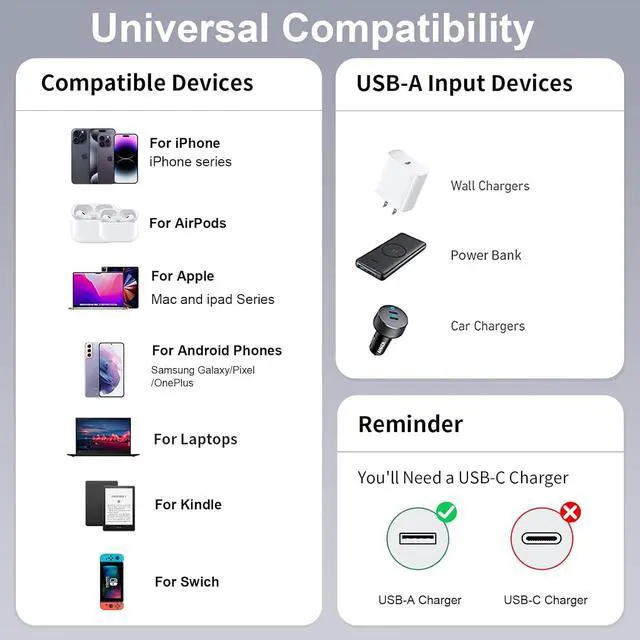 Compatible devices: iPhone 15/15 Plus/15 Pro/15 Pro Max/14/14 Plus/14 Pro/14 Pro Max/13 mini/13/13 Pro/13 Pro Max/12 mini/12/12 Pro/12 Pro Max/11/11 Pro/11 Pro Max/XS/XS Max/XR/X/8/8 Plus, Samsung Galaxy S23/S23+/S23 Ultra/S22/S22+/S22 Ultra/S21/S21+/S21 FE/S20/S20+/S20 Ultra/Note 20 Ultra/Note 10/Note 10+/A80/A71/A54/A53/A34/A14/A03s,Samsung Galaxy Z Fold 5/ Z Flip 5/ Z Fold 4/ Z Flip 4/ Z Fold 3/ Z Flip 3/ Z Fold 2/ Z Flip 2,Google Pixel 8/8 Pro/7/7a/7 Pro/6/6a/6 Pro/5/5a/4/4 XL,OnePlus 11/10 Pro/9/9 Pro/N200/N100/N10/8/8 Pro/8T/5/5T