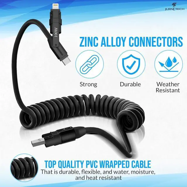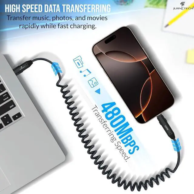 Perfect for Travel Compact and Tangle-Free: Designed with travelers in mind, The JURNETECH retractable charging cable is lightweight, compact, and easy to store, making it the ideal travel companion. Its adjustable length ensures tangle-free use, so you can conveniently charge your devices on the go, whether you're at the airport, in a hotel, or on the road.