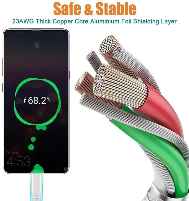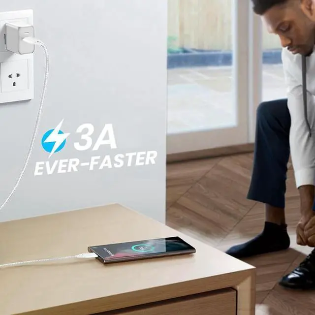 3A Fast Charging and Sync:3A Fast Charger, Transfer speed up to 480Mbps, This USB Cable Accelerate the speed by delivering 5V/3A safe charging power (25% faster) compared with other cables which provides 5V/2.4A current.