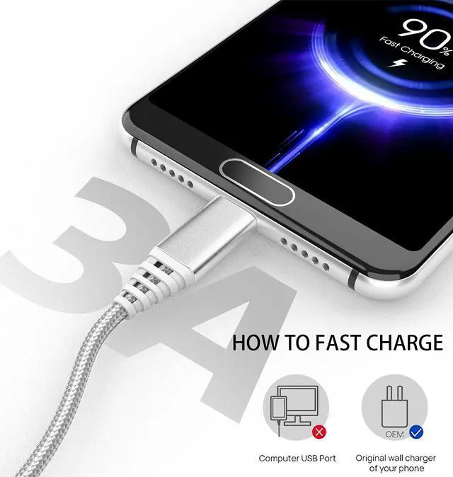 3A Fast Charging and Sync:3A Fast Charger, Transfer speed up to 480Mbps, This USB Cable Accelerate the speed by delivering 5V/3A safe charging power (25% faster) compared with other cables which provides 5V/2.4A current.