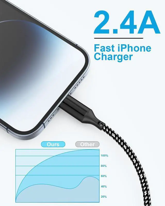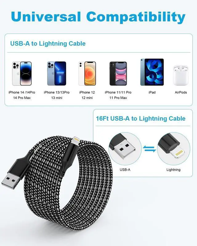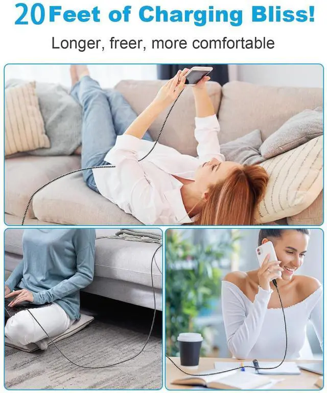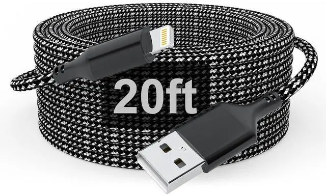 20 FT Long iPhone Charger: Experience unparalleled convenience with our extra-long iPhone cable, offering an impressive 16 FT length. Charge your iPhone effortlessly in any room, vehicle, or outdoor space. Our cable liberates you from short cable constraints, allowing you to move freely while your devices charge.