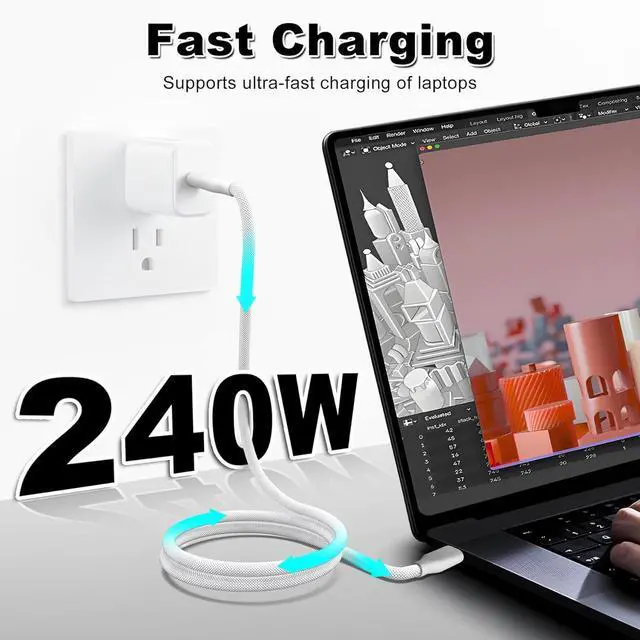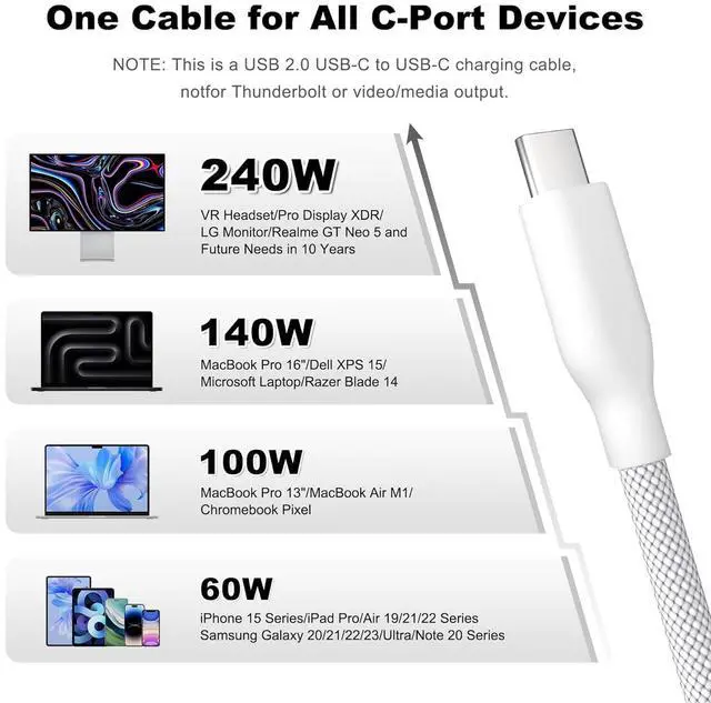 Ultra High Power Supply : HYairspy usb c cable fast charging supports PD3.1 and QC4.0 fast charging with a max 240W output, which can charge the iPhone 16 from 0% to 71% in 30 minutes, with full capability for all Thunderbolt 4, Thunderbolt 3, USB-C, and USB4 devices. It can quickly charge high-power devices such as laptops and monitors, and is equipped with an intelligent chip to ensure stable and reliable high-power charging, avoiding overheating or short circuit risks.