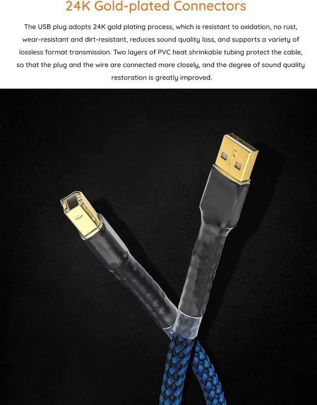 Fast and reliable data transfer- The Viborg High-end DAC USB Cable is equipped with a 24K gold plated USB 2.0 connector, ensuring a stable and high-speed data transfer rate of 480Mbps. Transfer files and documents quickly and efficiently with this reliable cable.
