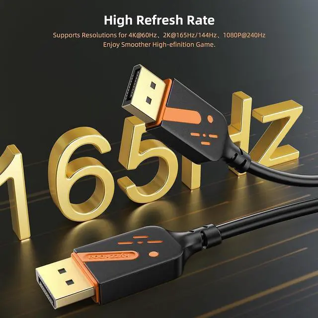 FreeSync and G-Sync Technology, 3D, ARCThe high refresh rate of 165hz makes the game more smooth, the screen scrolls more smoothly, and the touch feedback is faster. This dp cable support 21.6Gbps high-speed transfer, HBR2 rated; Supports FreeSync and G-Sync technology, 8-bit and 10-bit deep color and sharp images;Compatible with Audio Return Channel (ARC), 3D Surround, Digital 7.1, 5.1 channels, DTS-HD, and Dolby audio