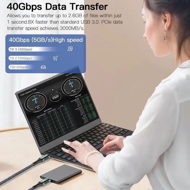 High Speed File TransferTransfer 2.6GB of files within 1 second. Note: Ensure your device supports Thunderbolt 3 for optimal performance. Greatly saving time and improving transmission efficiency.