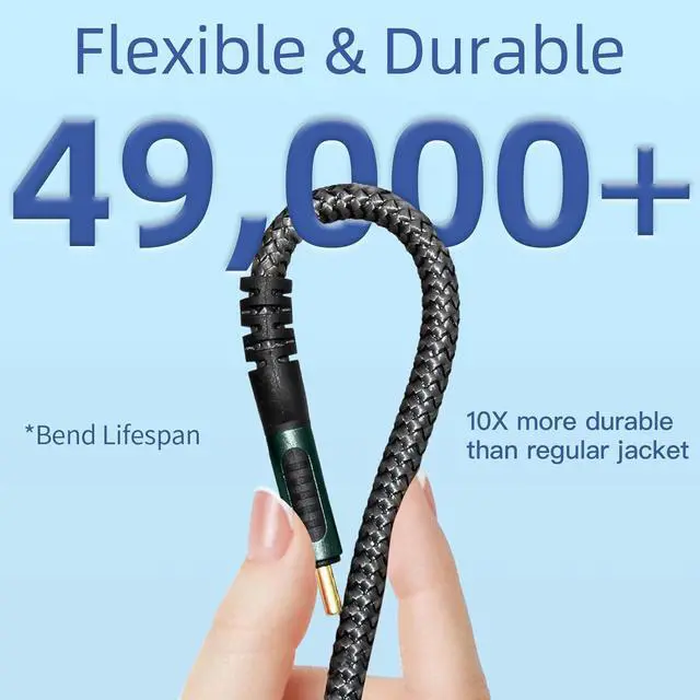 10X More DurableHigh quality nylon braided jacket with 49,000+ bend lifespan. 10X more durable than PVC. 240W USB C for Thunderbolt 3 cable has a quadruple shielded and tinplate can extremely resistant with EMI. Zinc Alloy shell to effectively maximizes heat dissipation. Tested plugging and unplugging over 30,000+. 24K gold-plated USB C connectors have antioxidant and anti-corrosion properties.