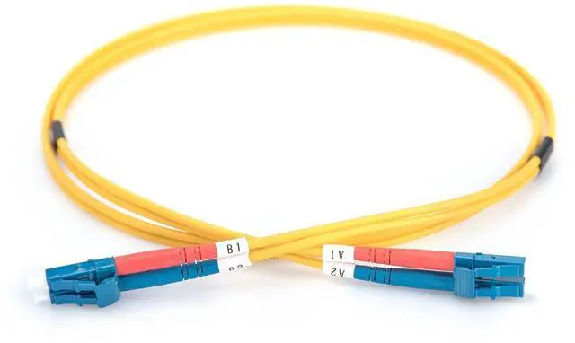 Each patch cable contains a fiber for the forward and backward channel as well as plugs with ceramic ferrule and two-color anti-kink sleeves for unambiguous fiber identification.