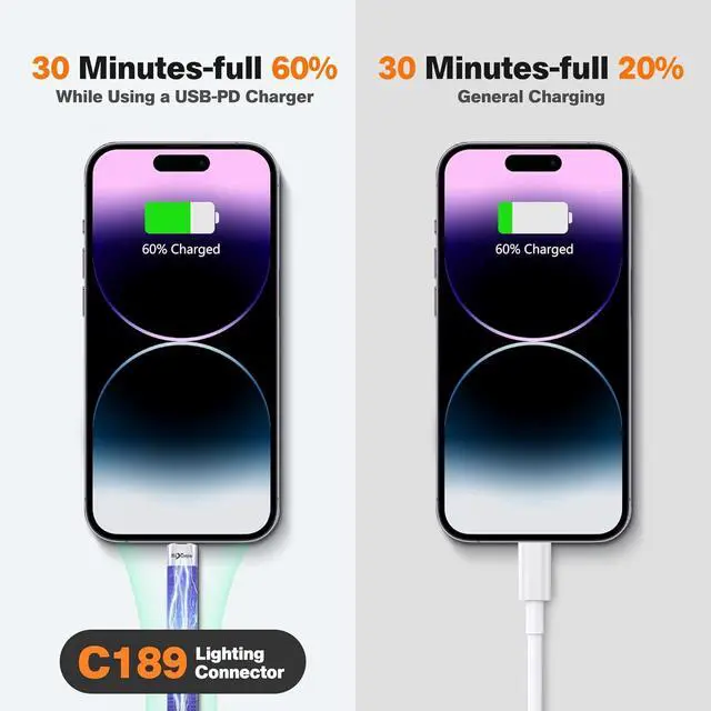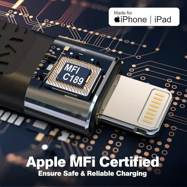Apple MFi CertifiedAdopt latest C189 MFi chip which is stable and reliable to charge your iPhone without pop-up warning message, ensure all your Apple devices are safely charged at their fastest possible speed.