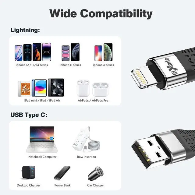 Widely CompatibleThe iPhone Lightning USB A cable fully compatible with iOS and works flawlessly with any Apple devices which has a lightning connector. It supports PD Fast Charge for iPhone SE 2020/12 Pro/12/12Mini/11 Pro/11/XR/XS/X/iPad Pro /iPad Air 3/iPad mini 5,etc. (Warm Tips: Only iPhone 8 and the newer iPhone support PD rapid-charge.) Note: Doesn't work with Dac.