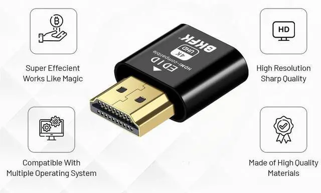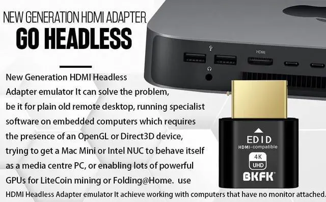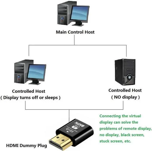 hdmi dummy plug Unlock the Potential - 4k-headless HDMI dummy dongle ensures stable digital signal and unlocks the full potential of graphics card, fits into the HDMI output and will work with any graphics card without compatibility issues. It is a must-have for colocation farms, home/SOHO servers and remote-deployed headless PCs.ideal for twitch game streaming, OBS, VR, crypto mining and using Mac Mini server with screen sharing, luna display etc.