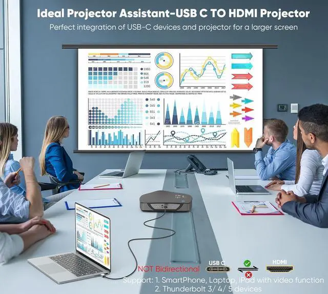 Important1. This is a one-way USB C to HDMI Cable, not converting HDMI to USB C. 2. This is Type-C to HDMI, not compatible with lightning to hdmi.