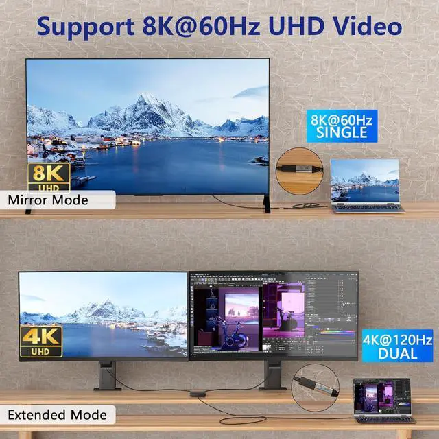 8K 60Hz Video Transmission Embark on a new journey of ultra-high-definition vision. This product can significantly extend the video connection distance. Meanwhile, with the outstanding performance of up to 8K resolution and 60Hz refresh rate, it ensures that every frame is exquisitely realistic, presenting you with a magnificent and luxurious visual feast. Moreover, it is thoughtfully backward compatible with various specifications, such as 5K 60Hz, 4K 144Hz, 4K 120Hz, and 4K 60Hz, etc., fully satisfying your diverse visual enjoyment needs, easily adapting to all kinds of display devices, and seamlessly connecting with your high-definition entertainment life.