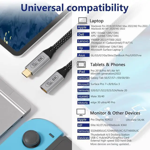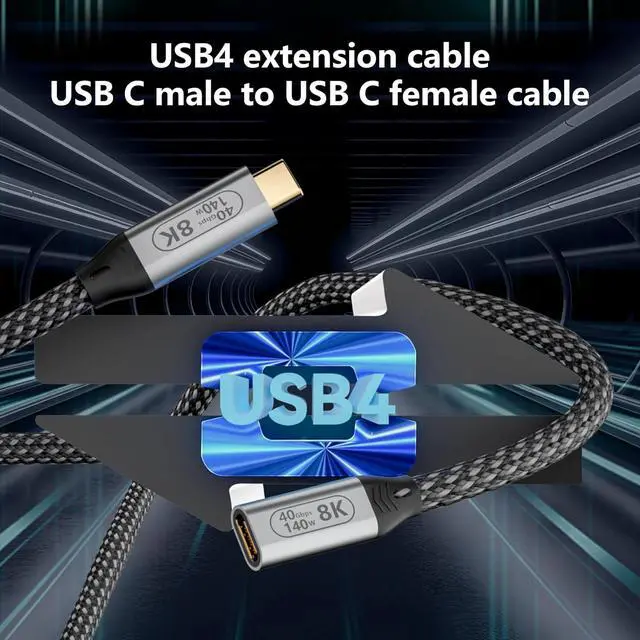 KMMXXCPM USB4 Extension Cable This usb c extension cable fully complies with the USB4 standard. It is specially designed to extend and protect the connectors on all USB-C devices, effectively solving the problem of insufficient cable length. If you need to plug and unplug frequently, choosing our Thunderbolt 3 and Thunderbolt 4 extension cables can reduce the wear and tear on the device connectors.