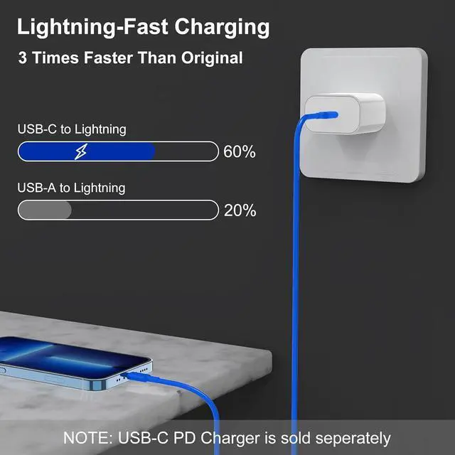 For iPhone14 Fast Charging Cord USB C to lightning cable charging your iPhone14/13/ 12 from 0% to 50% within 30 minutes. Compatible with iPhone14/iPhone14 pro/iPhone14 pro max/iPhone14 max/iPhone 13/ 13 Mini/ 13 Pro/ 13 Pro Max/ iPhone 12/ 12 Mini/ 12 Pro/ 12 Pro Max/ SE 2020/ iPhone 11/ 11 Pro/ 11 Pro Max/ XS/ XS Max/ XR/ X/ 8 Plus/ 8/ 7 Plus/ 7/ 6s Plus/ 6s/ 6 Plus,AirPods 3rd generationAirPods 3rd generationAirPods Pro (1st Generation).