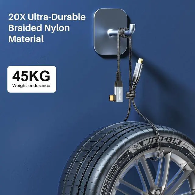 8K@60Hz & Dual 4K@60Hz USB C Video Cable USBC to USBC video cable to stream video content to a single usb c monitor up to 8K/6K/5K, or dual usb-c monitors in 4K (Dual monitors require 2 cables), and can power the monitor. Plug and play, no installer required. (*Note: Restricted by right angle, not applicable to devices with thick protective case.)