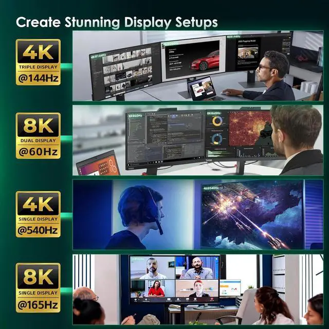 Dual 8K / Triple 4K 144Hz Display: 240W USB C cable for Thunderbolt 5 cable 6.6ft is capable of supporting dual 6K 60Hz or dual 8K 60Hz displays, or even triple 4K 144Hz, providing crystal-clear visuals and an immersive viewing experience. Gamers can enjoy gaming in stunning 4K resolution at various refresh rates, including 540Hz, 240Hz, and 144Hz, ensuring smooth and fluid gameplay, Single 8K@165Hz. Note: Please ensure that your device supports it.