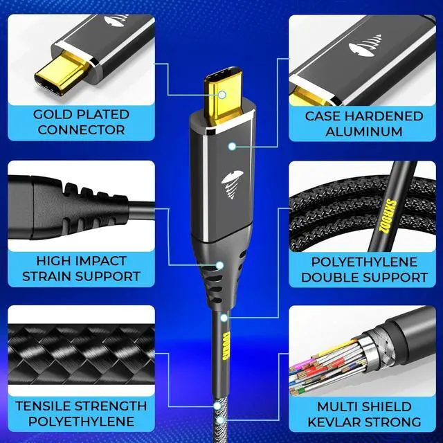1 USB Cable, Done Forever Your premium USB C cable features Kevlar-reinforced construction and aluminum housing wrapped in a durable polyethylene braid, creating a type C cable engineered to withstand daily stress and last a lifetime.