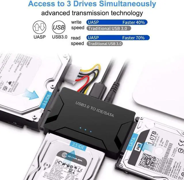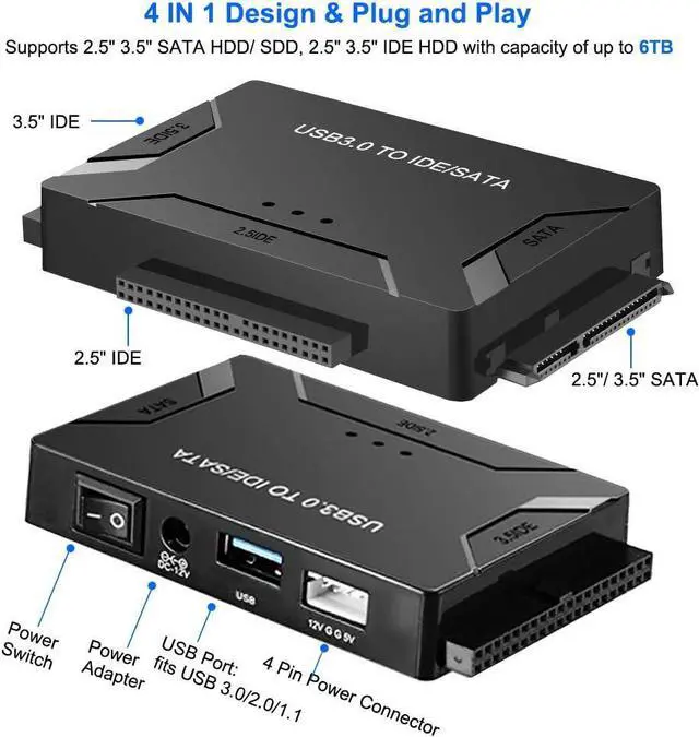 FAST & RELIABLE TRANSFER RATE -- With USB 3.0 interface, high speed transfer rate up to 5Gbps. Supports 2.5 '' 3.5 '' SATA , IDE up to 5TB. The IDE Converter is also backwards compatible with USB 2.0 / 1.1.