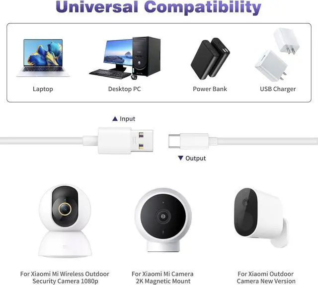 USB to USB-C cables for security cameras power, power charging cable provides continuous power supply and keep your camera running day and night (Please Note this is a USB C power cord with a low current for CCTV camera, not for any cellphone, tablet chargingnot for sense camera,video camera,document camera, not for printer projector or other devices)