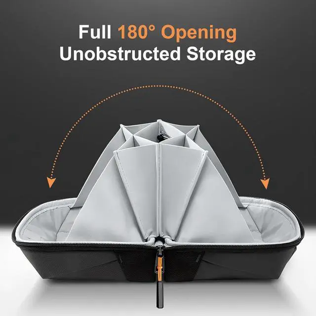 Spacious and clear design: This cable organiser bag features a 180° opening design and provides easy access to all your devices and accessories. The spacious interior includes special compartments and pockets that keep everything neatly organised and protected during the trip.
