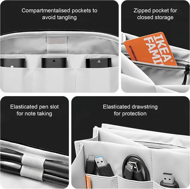 Durable and lightweight construction: This cable organiser is made of high-quality materials and is both durable and lightweight. The durable exterior protects your items from wear and tear and the lightweight design ensures that the bag is comfortable to carry even when fully loaded.
