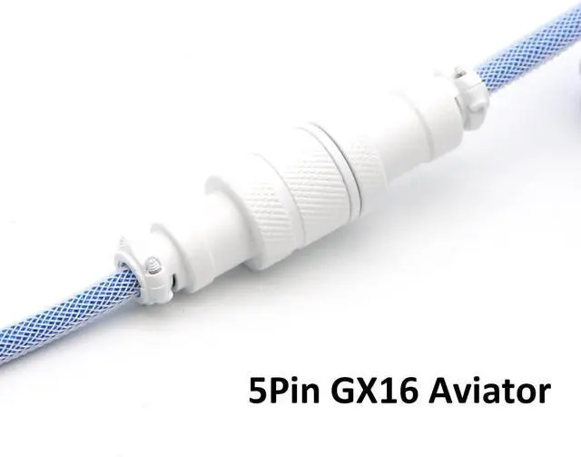 Pro Coiled Keyboard Cable, Double-Sleeved Mechanical Keyboard Cable with 5Pin GX16 Aviator, 1.2m USB A to USB Type C (Blue)