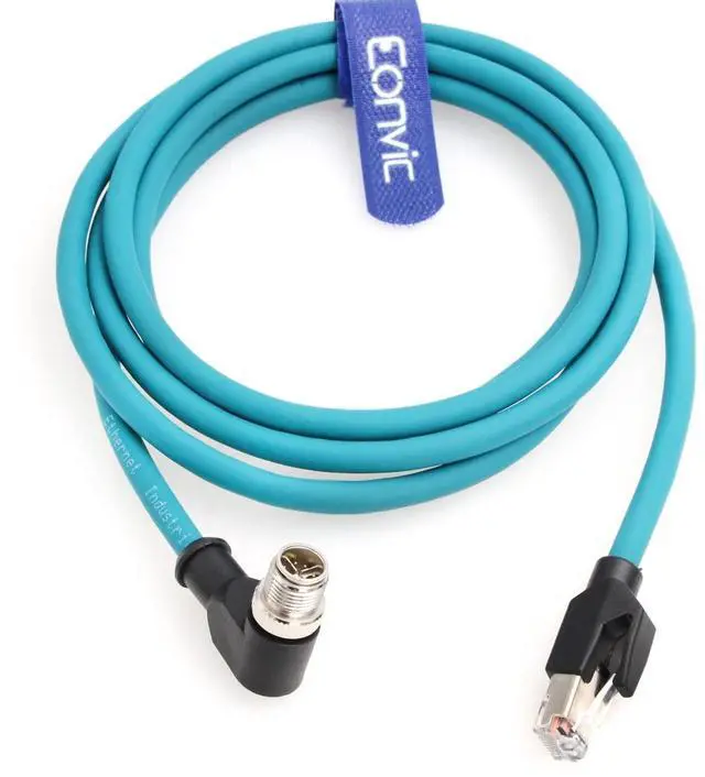 M12 X-code RJ45 X code plug ETHERNET cable is a single foil twisted pair cat5e cable with a blue PUR jacket rated at 24 AWG wire M12 Connector with gold plated X coded contacts ensure reliable connectivity