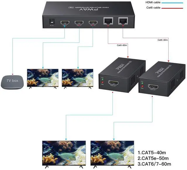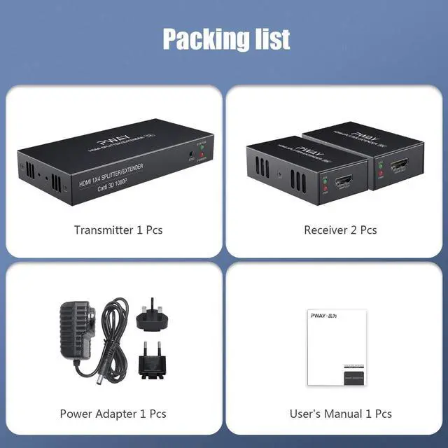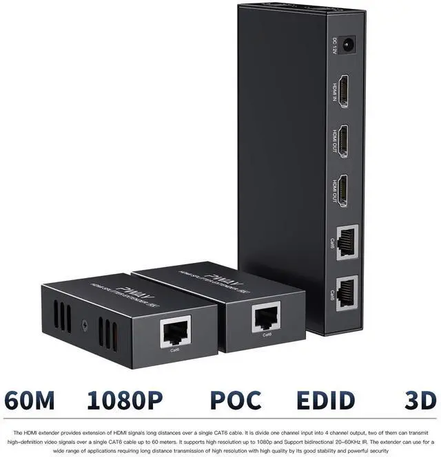 1 IN 2 OUT:All the way to HD video source is divided into four by Cat6 transmission of 50 meters of high-definition video signal