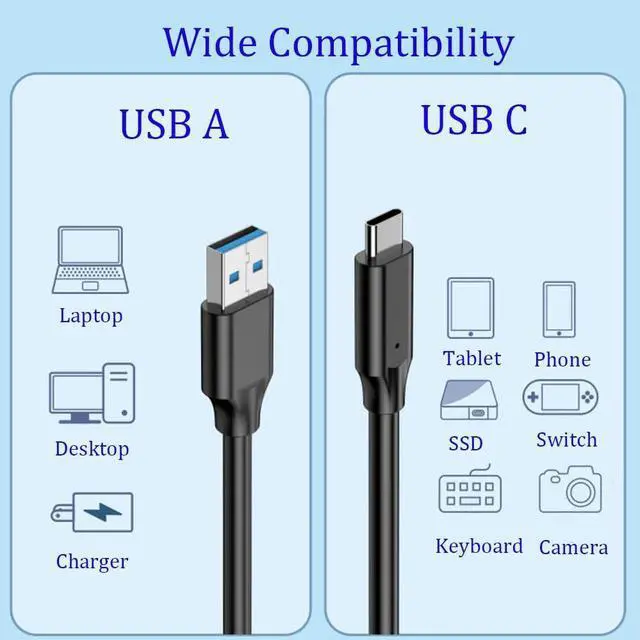 Wide CompatibilityThis USB type C cable is compatible with a wide range of devices that support USB-C technology, including smartphones, tablets, laptops, portable SSD and other USB-C devices.