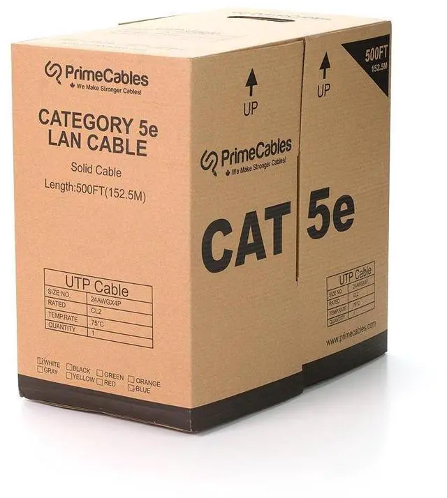 8 Conductors, 4 Twisted Pair ,Gold Plated Contacts - 4 Pair, Unshielded Twisted Pairs (UTP), 24AWG, thick and high quality material conductors for optimal signal strength. In order to increase the Cat 5es Cable performance, Primecables.ca made the connection contacts with gold plated in order to protect the entire surface. The 8P8C dual-line position is durable and resistant for plug-in and plug-outs.