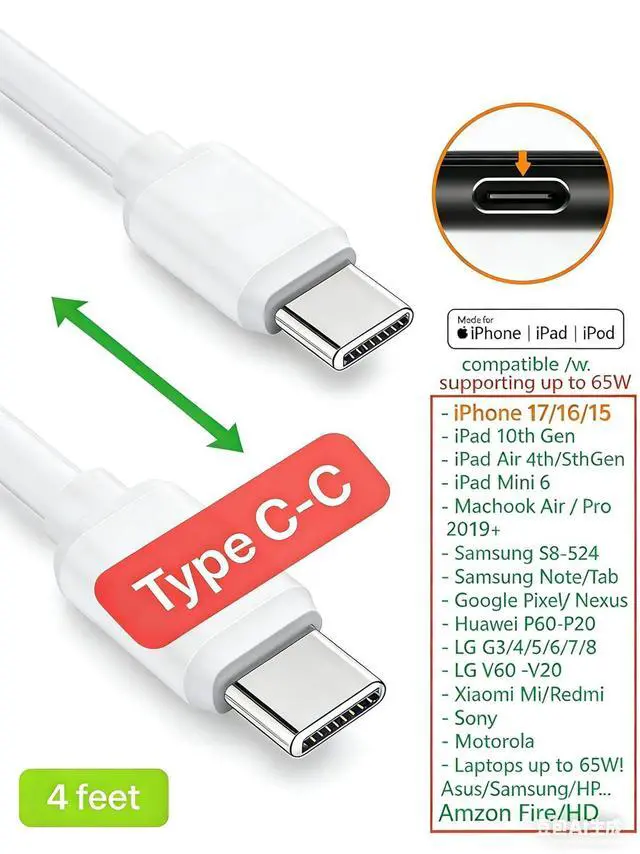 1pcs x 4-Feet C - lPhone Supports up to 27W