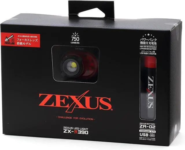 Tomiji Lighter ZEXUS ZX-R390 (USB Charging Type) Introducing a high-spec lightweight model with focus. Features: 750 Lumens. Includes ZEXUS rechargeable battery ZR-02. 1 white light 1 red light OFF. Equipped with focus function. The red light mode does not allow light to pass through even when the surface is illuminated, so you can rest assured that it is safe for night fishing. Equipped with dimming memory function that can adjust the brightness. USB charging allows you to charge it from a car or mobile battery.