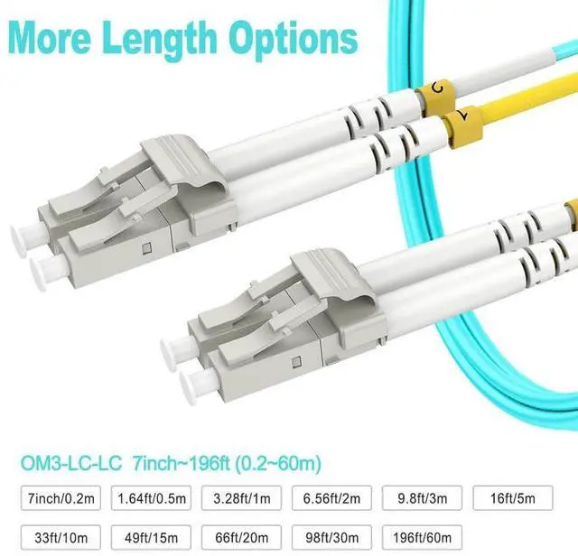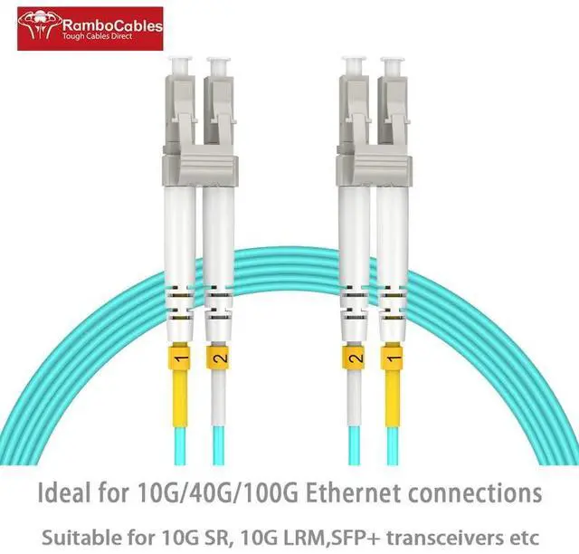 OM3 LC-LC Multimode Duplex Fiber Patch Cable RamboCables 61m/200ft OM3 LC to LC Multimode Duplex Fiber Patch Cord is constructed wtih 50/125m high rated fiber cladding, 850/1300nm Wavelength, 2.0 mm fiber cable diameter and environmentally friendly LSZH fiber jacket. This international industry standard OM3 lc/ lc duplex multimode fiber optic cable ensures a more stable and efficient transmission for your network.