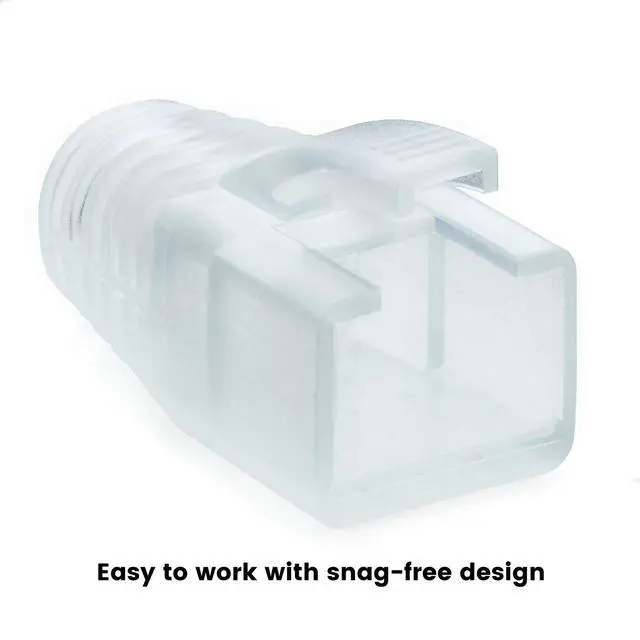 100 PIECE RESEALABLE BAG. These transparent RJ45 strain relief boots are sure to make your install hassle-free.