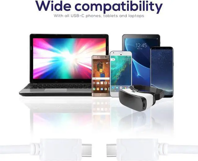 20 foot long USB C to USB C cable for charging and powering USB Type-C enabled devices, as well as syncing data, photos and music. Up to 480 Mbps data transfer speed; power output up to 2.9 Amps. Compatible with new Android devices such as the Samsung Galaxy S10E, S20, S10 and S9, the Samsung Note 20, 10 and 9. Compatible with Google Pixel 6 and 4.